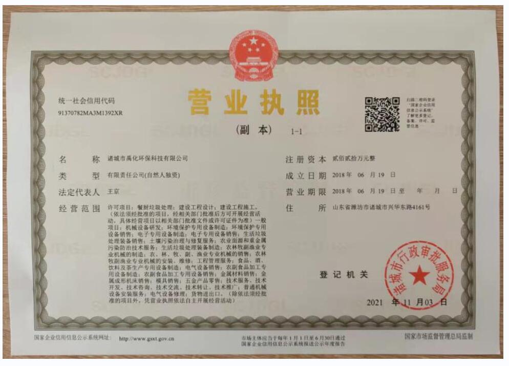 诸城市禹化环保科技有限公司从事畜禽无害化处理装备、污水处理设备、畜禽粪污处理装备无害化处理设备等环保设备等专业研发制造,历经几年的发展,现已成为集技术研发、工艺设计、产品制造、安装培训为一体的现代化机械制造工业企业。公司坐落于沿??懦鞘胁⒂小爸泄撬吹酃世铩敝频闹畛鞘?,东邻海滨名城青岛,南毗新兴港口城市日照,交通便利,地理位置优越。公司坚持以诚信谋发展的理念,以“精湛的工艺技术、精良的设备品质、精细的售后服务”,赢得了广大用户的认可和赞誉,产品销售遍布全国各地,并远销东南亚、东亚、南美洲、中东等国际市场。
